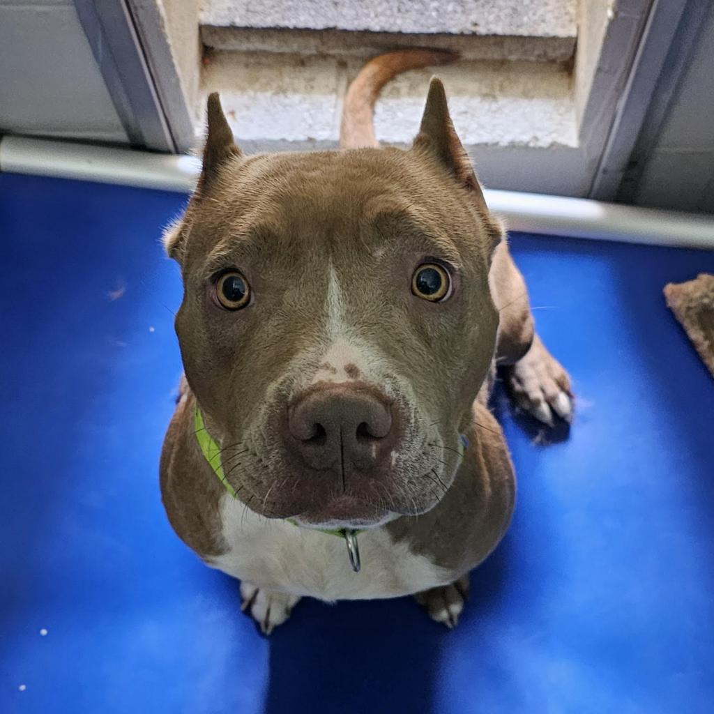 Ophelia is a young adult American Staffordshire Terrier. She is very lovable and playful. She does think she is a lap dog but she doesn’t know her size and that won’t stop her from jumping on your lap and giving you kisses like crazy! Her favorite toys are the tennis balls and stuff animals. Ophelia would do best being the only fur baby in the house. This beautiful sweet girl is waiting for her furever home.
